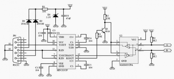 二、RS232-485转换方法 电路图: