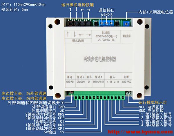 型号名称:双轴Modbus-RTU通信协议RS485控制器,型号缩写为:SZMC-RS485!