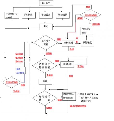 一、功能及要求(基于文本方式) 1) 高清液晶LCD 蓝屏显示、方便的人机交互界面; 2) 高精度高速度、抗强干扰能力、功能强大、稳定可靠; 3) 1 路步进/伺服电机高速高精度运动,输出高速脉冲频率最高达200KHZ,送料控制精度高达0.01mm。有足够的I/O 数字量信号端口已满足功能要求; 4) 开机界面显示厂家信息; 5) 可设定冲床、滚轮送料过程涉及的多种参数,包括:送料长度、产量计数(送料完成的产品数量)、系统正在运行的状态状态(运行、停止、手动)、自动送料速度、手动送料速度、加减速时间、送料轮大小、每转脉冲等; 6) 其余功能:具有无料检测、送完输出检测、系统急停/暂停/启动、产品数量计数清零、产量计数到达或无料停机时有报警输出功能;无料检测、送料到位使能两个功能,每个功能如设置为0,即跳过该功能进行下一步工序,两个功能都短接,即冲床主动触发信号控制送料;如启用,即送料到位后控制冲床动作。 7) 密码设置功能:系统参数设定权限的密码; 8) 可实时实现高精度(0.01mm 送料精度)、高速的定位(定长)、定时、速度控制; 二、说明文档:(给苏州客户定制)